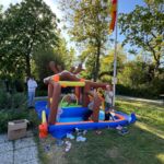 Der Bauhof hatte uns wieder einmal bestens mit allem Material (Bänke, Tische, Kabeltrommeln, Brücken über die Straße etc) versorgt. Die Kinderspielwiese war in diesem Jahr außergewöhnlich gut besucht, es gab sogar eine bunte Hüpfburg, große Seifenblasen, Kinderschminken, Dosenwerfen und vieles mehr. Eldrid Wollenhaupt, Heike Krömker-Krämer und Brigitte v. Appen haben sich mit großem Engagement darum gekümmert, dass auch die jüngeren Besucher ein wunderbares Fest erleben konnten, bevor sie sich am Crêpe-Stand auf der Festwiese stärken konnten.