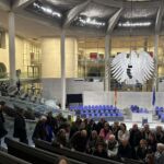 Mit einem gemeinsamen Abendessen ging ein ereignisreicher erster Tag zu Ende. Dank des diplomatischen Geschicks von Björn Wackernagel und Holger Klink konnte auch die vergessene Tasche schließlich aus den Tiefen des Berliner Flughafens geborgen werden. Am nächsten Morgen ging es früh mit der U-Bahn los, um 8:30 Uhr mussten wir bereits zur Einlasskontrolle am Deutschen Bundestag sein. Der Besuch der imposanten Kuppel war für die Witterung etwas zu ausgedehnt geplant, es war doch einigermaßen zugig und kühl dort oben. Beim anschließenden Treffen mit der Strander Bundestagsabgeordneten und BIMARE Gründungs-Mitglied Christine Aschenberg-Dugnus gab es interessante Einblicke in die Abläufe der Deutschen Gesetzgebung und die Arbeit des Deutschen Bundestages, die beim gemeinsamen Mittagsessen in der Kantine des Bundestages noch vertieft werden konnten. Der Besuch der beeindruckenden Holocaust-Gedenkstätte fand danach leider bei strömendem Regen statt.