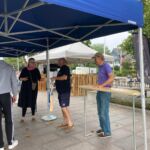 Die neuen Zelte waren leicht aufzubauen, dabei jedoch äußerst stabil – ideal für unser Fest an der Promenade. Mit bunten Flaggen und Bannern sorgten wir für ein einladendes Ambiente, das unsere deutsch-französischen Aktivitäten hervorhob. Pünktlich um 15:00 Uhr eröffnete Bürgermeister Holger Klink offiziell das Fest – und trotz grauem Himmel strömten zahlreiche Besucherinnen und Besucher auf das Gelände. Selbst ein kurzer Regenschauer konnte der Stimmung keinen Abbruch tun.